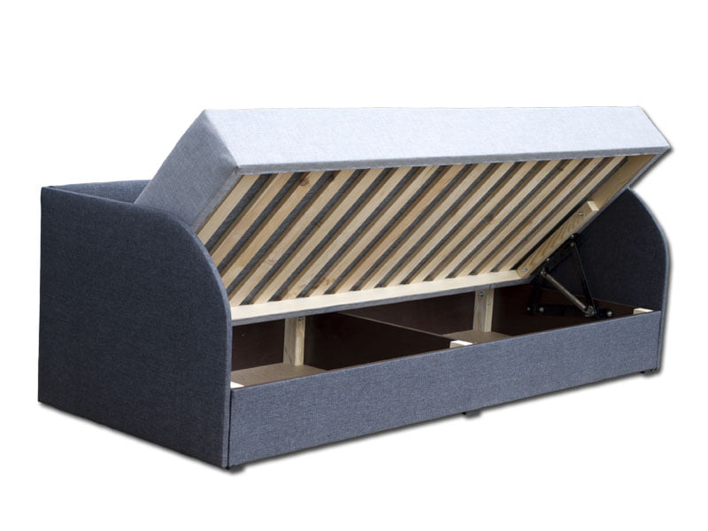 Особливістю ліжка Болеро 2 є пружинний механізм алігатор, який дозволяє легко підняти верхню частину ліжка та отримати доступ до просторої ніші для зберігання спального приладдя. Це практичне рішення для організації простору у Вашій спальні.