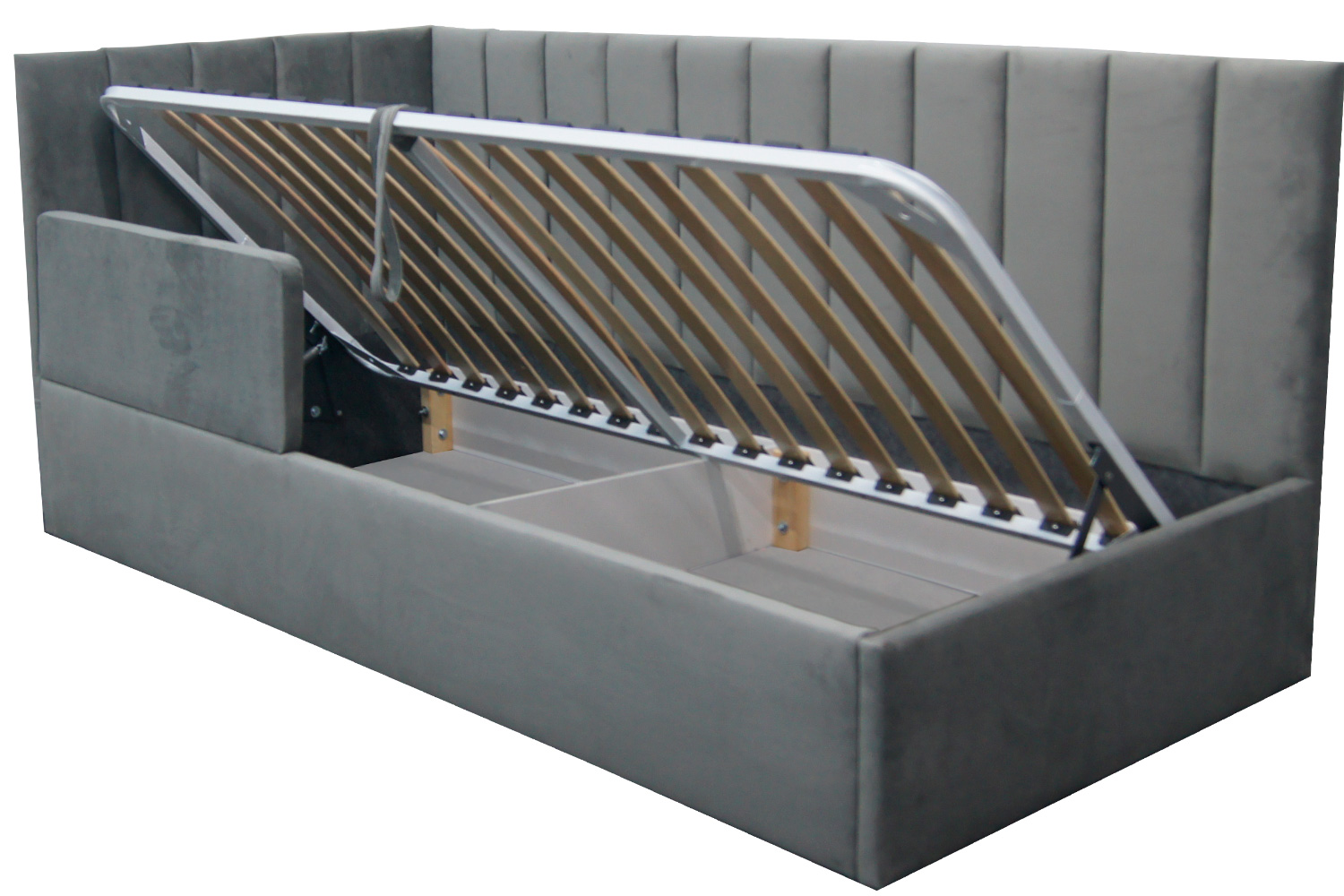Підйомний механізм працює плавно і без зусиль, що робить використання ліжка зручним для людей будь-якого віку.